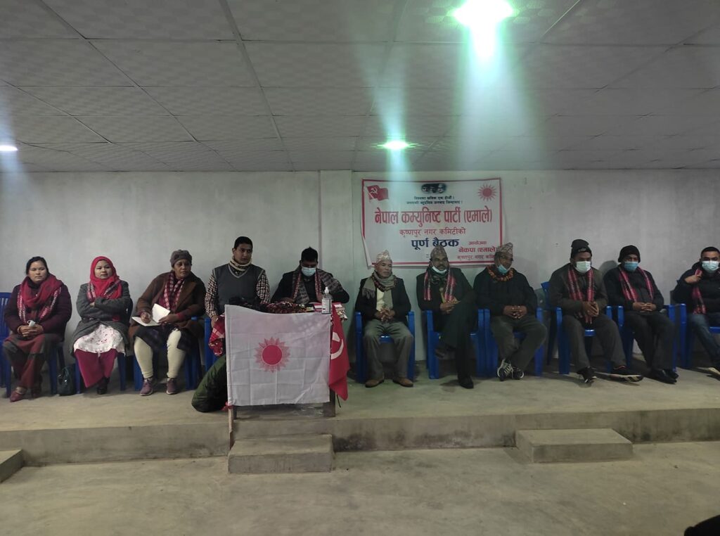 नगर कमिटि अध्यक्ष गणेश ऐरीको अध्यक्षतामा बसेको बैठकमा प्रदेश कमिटि सदस्य शेर बहादुर सिंह, जिल्ला उपाध्यक्ष लक्ष्मी बुढा र नगर ईन्चार्ज लोकराज पन्तलगायत जिल्लाको सहभागीता रहेको थियो ।